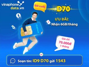 Đăng ký gói cước D70 Vinaphone, với số tiền 70.000đ trong tài khoản quý khách [...]