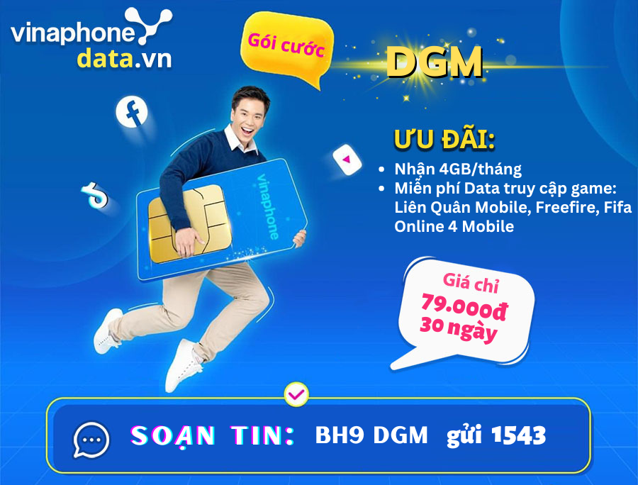 Gói cước DGM Vinaphone là gói cước miễn phí data cho các game online đang thịnh hành trên điện thoại hiện nay. Với 79.000đ/tháng khi bạn đăng ký thành công bạn sẽ được miễn phí data khi truy cập vào game: Liên Quân Mobile, Freefire, Fifa Online 4 Mobile, ngoài ra bạn còn được nhận thêm 4GB data tốc độ cao để thoải mái lướt web. Hãy cùng tìm hiểu về gói cước này nhé!