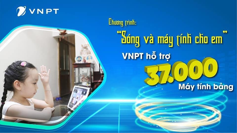 Mới đây tại lễ phát động chương trình “Sóng và máy tính cho em”, Đại diện VNPT cho biết sẽ tham gia hỗ trợ 37.000 máy tính bảng để giúp học sinh, sinh viên thuộc hộ nghèo, hộ cận nghèo tại các địa phương đang thực hiện giãn cách theo Chỉ thị số 16 triển khai học trực tuyến, bảo đảm không để học sinh nào “bị bỏ lại phía sau”.